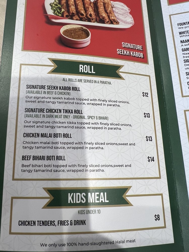 Chicken Malai Boti wrapped in our Signature Paratha with red onions and imli chutney (available in Naan as well).